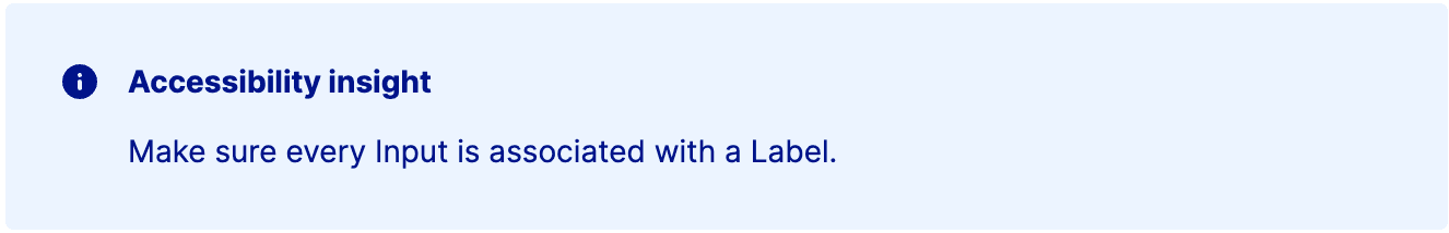 With five different variants to choose from, all your imperative, static information will be hard to miss inside of the Callout component! Don't forget to set its heading level according to the outline of your page for the best user experience.
