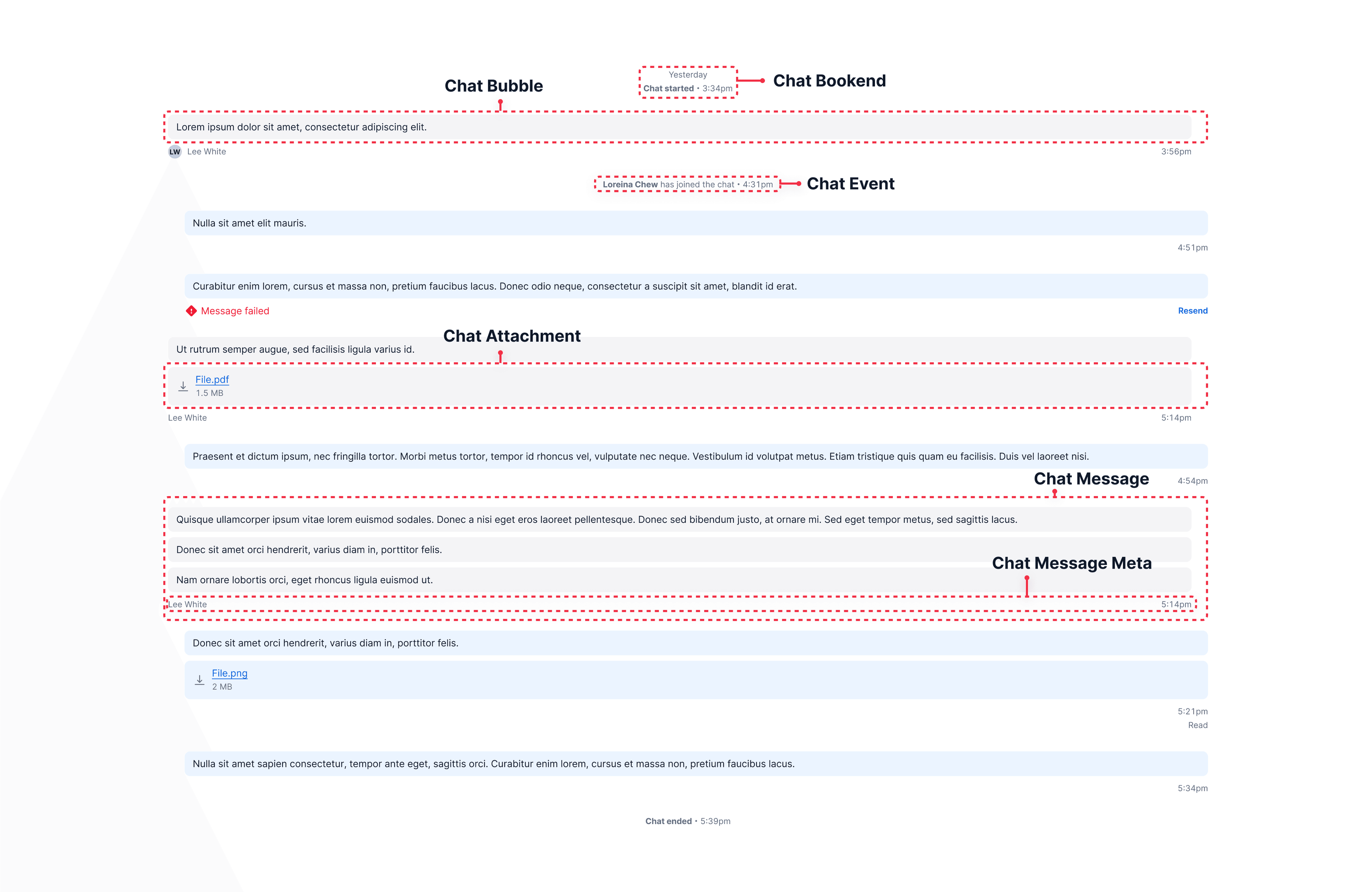 • Chat Message: a wrapper for Chat Bubbles, Chat Message Meta, and Chat Attachments
